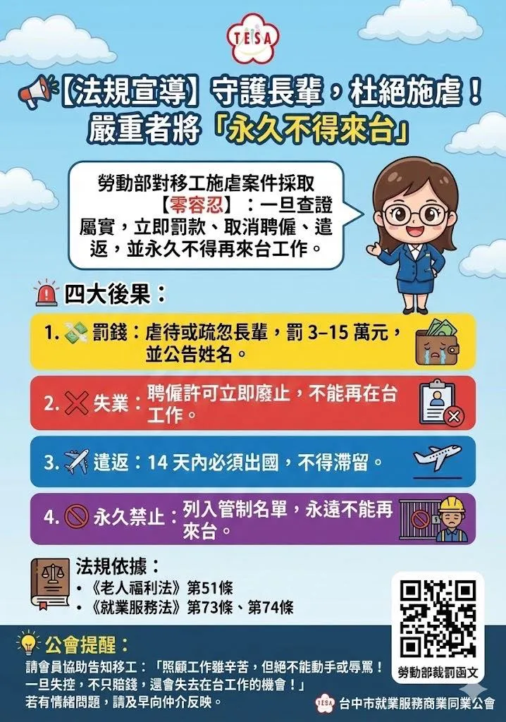 首頁 > 最新消息 > 法規公告 > 【法規宣導】守護長輩,杜絕施虐!嚴重者將「永久不得來台」-台中居家看護/台中居家看護申請